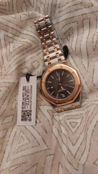 *Elegante reloj de pulsera con un diseño bicolor. *Esfera dorada con detalles. *Brazalete combinado en oro y plata. *Bisel estriado. *Hago envíos por Wallapop e Inpost.