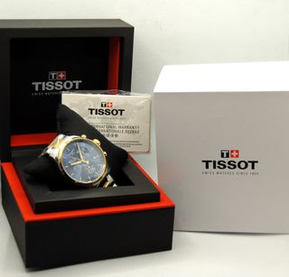 Reloj NUEVO con etiqueta, marca Suiza Tissot. Prestigiosa marca calidad e historia. - Caja de PVD en oro: Elegante y duradera, resiste a los arañazos y pérdida de color. - Cristal de zafiro: Esfera de alta gama. - Movimiento de cuarzo suizo: gran precisión y poco mantenimiento. - Función cronógrafo: práctico para medir tiempos (deporte, conducción...). - Diseño versátil: combina bien tanto con ropa formal como con looks casual. - Calidad del brazalete: Acero, gran resistencia y peso, muy buena sensacion en la muñeca. - Se entrega en su caja original, junto al manual y tarjeta garantia sin abrir. ¡Precio Negociable! un saludo