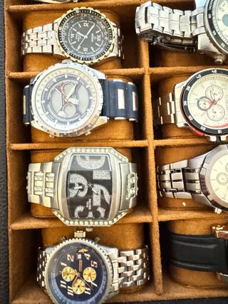 Se vende una colección de 24 relojes de pulsera. Se vende colección de 24 relojes de pulsera, la mayor parte nuevos o con poco uso, una oportunidad de oro para llevar un reloj distinto cada dia. - Diseños variados. - Combinación de tonos dorados y plateados.
