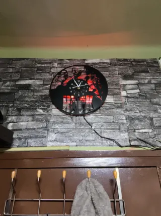 Reloj de pared con diseño de Freddie Mercury de Queen. La iluminación LED le da un toque especial. - Diseño recortado de vinilo. - Iluminación LED multicolor. -se incluye mando para el led No hago envíos entrega en mano