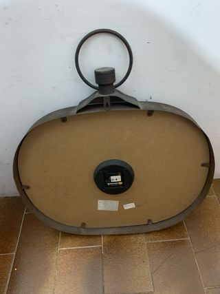 Preciosa pieza para decorar tu hogar. Es un reloj de pared de la marca IRAMEN. - Tiene una forma ovalada. - Su caja es de madera oscura. - La esfera es de color crema.