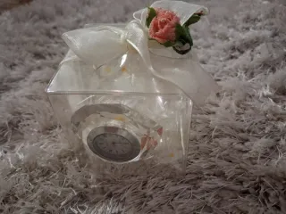 Precioso reloj con forma de corazón de cristal, ideal como detalle. - Mecanismo de quarzo. - Presentado en caja transparente decorado con una flor y lazo. Quizas necesite cambiar la pila, ya que hace tiempo que está parado. NUEVO A ESTRENAR Medidas: 4,5 x 4,5cm