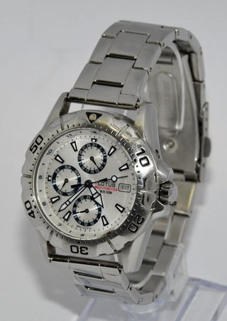 Reloj Lotus en acero inoxidable, sumergible, cronómetro, fecha... Etc. En su caja original. Está como nuevo. Un par de puestas solo