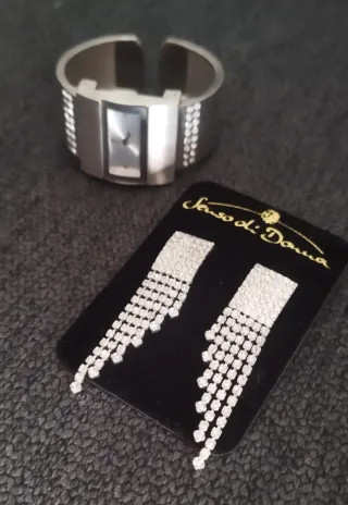- Par de pendientes elegantes. Colección Senso dii Donna de Bijou Brigitte. - Reloj de pulsera con piedrecitas brillantes. Marca LBVYR.