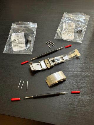 Un par de hebilla de cierre ajustable de 20mm para correas de reloj. Acero inoxidable. Incluye herramienta y 3 pasadores por cada juego. Nuevo a estrenar. --NO HAGO ENVÍOS--