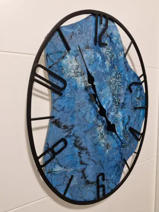 Original reloj de pared decorado con resina epoxy y piedras naturales. Su diseño abstracto le da un toque moderno y único. - Pieza artesanal. - Acabado brillante.