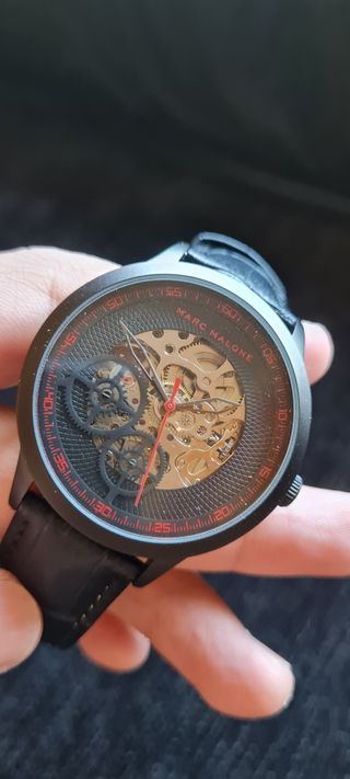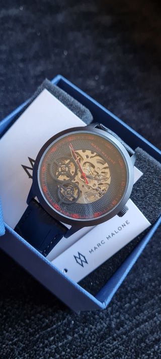 Reloj automático, tourbillon Sumergible a 10 m. Cristal mineral. Correa de pie. 289 euros en la web oficial. Caja original. Completamente nuevo, sin estrenar.