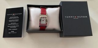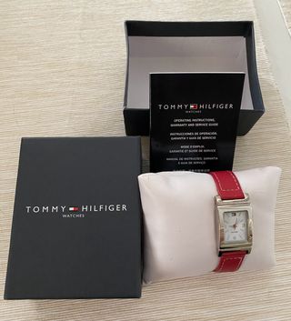 Reloj de mujer, marca "Tommy Hilfiger", resistente al agua, con correa de cuero color rojo. Dimensiones de correa 20 cm de largo (junto al reloj) x 1,2 cm de ancho. Discreto y versátil. Como nuevo, en su caja original. Posibilidad de recogerlo en persona. Local en la planta baja a pie de la calle, de fácil acceso con el vehículo (incluso más grande), aparcando delante del portal. Horarios de recogida flexibles, fines de semana incluidos.