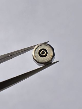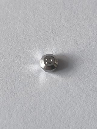 Pieza de repuesto plateada de la marca Omega. - Diámetro 5,05mm - tubo 2,00mm -Tija 0,90mm - Diseño facetado. - Acabado metálico.