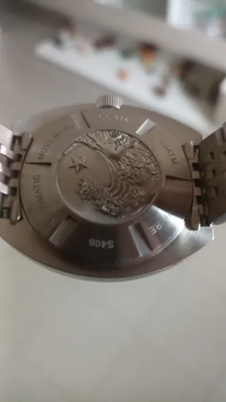 Reloj automático de la marca Seestern con una esfera naranja y detalles plateados. Sub300 - Mecanismo automático. - Correa de eslabones plateada. - Caja de reloj incluida. Reloj de restreno cristal zafiro corona roscada NH 35 SOLO VENTA NO AGO ENVÍOS NO NEGOCIABLE. Seiko certina Casio Hamilton longines crepas citizen orient zelos steeldive omega Mido orient phoibos TAG tissot seestern spinnaker