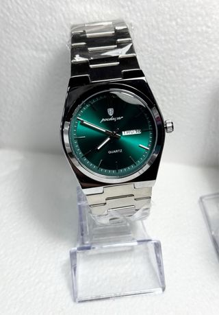 Elegante reloj Poedagar con una esfera de color verde vibrante y una pulsera de acero inoxidable plateada. Un accesorio moderno y sofisticado. - Diseño clásico con detalles contemporáneos. - Correa de eslabones metálicos. - Esfera con acabado brillante. - 3Atm