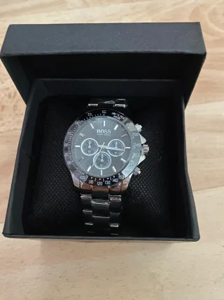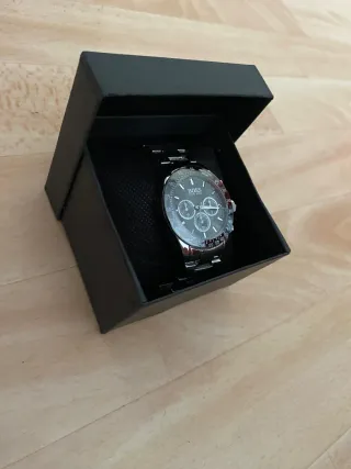 Elegante reloj de la marca Hugo Boss. - Diseño con detalles en negro y plateado. - Caja de presentación incluida.