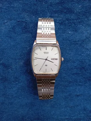 Elegante reloj Seiko Quartz con una esfera plateada y detalles plateados. - Japón 2633-5020R. - Diseño clásico y atemporal. - Correa de eslabones acero inoxidable - caja cuadro y tapa todo de acero inoxidable. - Indicador de día y fecha en español y en inglés. - antiguo y funciona perfectamente. - en muy buen estado todo salvo una mini razca en el cristal y una mancha negra en la esfera. - en muy buen estado en general.