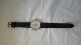 Reloj Lotus para hombre, en color plata y blanco. Es un reloj de cuarzo con correa de acero inoxidable. Se encuentra en buen estado, con algunas señales normales de uso en la correa. - Correa de acero. - Movimiento de cuarzo. - Esfera blanca.