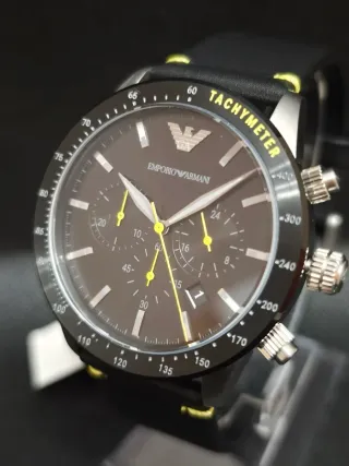 Reloj Emporio Armani AR11325 para hombre, cronógrafo de estilo elegante con esfera negra, taquímetro y fecha, con movimiento de cuarzo. Caja de 43 mm, cristal mineral y resistencia al agua 5 ATM (50 m). Correa de piel negra con cierre de hebilla. Reloj original, sin estrenar. 📦 Incluye caja original Emporio Armani, etiquetas y documentación. 🧾 Emitimos factura con IVA y proporcionamos 3 años de garantía legal. ⭐ Más de 720 envíos y valoración media 4,95/5 avalan nuestra profesionalidad. ℹ️ Términos, condiciones y garantías disponibles en nuestra tienda, pulsando el botón WEB del perfil. 📩 Escríbenos sin compromiso.