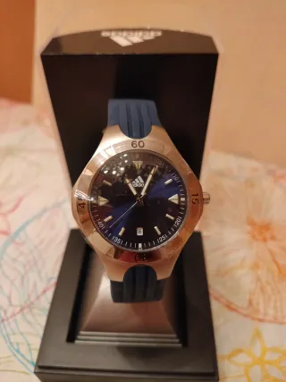 Reloj deportivo de hombre con un diseño moderno y elegante. A estrenar, se entrega en su caja original. - Correa de silicona azul. - Esfera azul con detalles plateados. - Bisel con marcadores de tiempo.