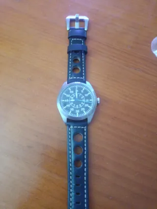 Reloj de aviador automático para hombre, en excelentes condiciones. - Correa de cuero marrón la de la imagen no va incluida - Caja de acero inoxidable plateada. - Esfera de color azul oscuro.