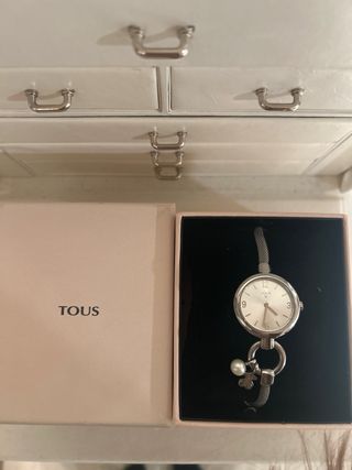 Elegante reloj de la marca Tous, con un diseño que combina tonos dorados y plateados. Nuevo en su envoltura a estrenar funciona perfectamente - Esfera con detalles decorativos. - Brazalete metálico. - Cierre de seguridad.