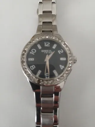 Elegante reloj Breil para mujer con un diseño sofisticado. - Esfera con detalles brillantes. - Bisel adornado con pedrería. - Correa de eslabones plateada.