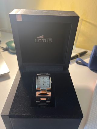 ¡Elegancia en tu muñeca! Vendo precioso reloj de la marca Lotus original para mujer. Tiene un diseño tipo brazalete muy sofisticado que combina los colores plata y oro, lo que lo hace perfecto tanto para el día a día como para ocasiones especiales. • Diseño: Esfera cuadrada minimalista con números romanos a las 12 y las 6. • Incluye: Caja original Lotus y eslabones adicionales por si necesitas ajustar el tamaño de la correa. • Funcionamiento: Movimiento de cuarzo de alta precisión.