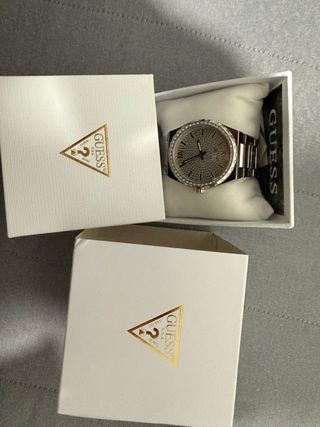 Elegante reloj Guess para mujer con un diseño sofisticado. - Bisel adornado con pedrería. - Detalle de logo Guess en la pulsera. - Combinación de tonos dorados y plateados. En perfecro estado de conservacion. Puesto 4 veces