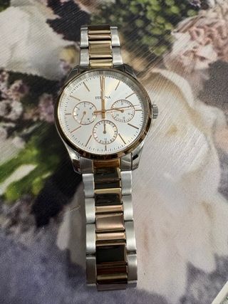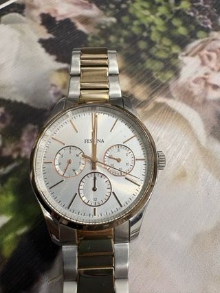 Elegante reloj Festina para mujer con un diseño bicolor. - Combinación de tonos dorados y plateados. - Bisel con detalles. - Esfera con marcadores y subesferas.