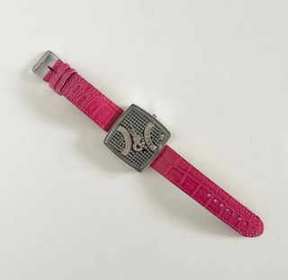 Elegante reloj D&G con un diseño llamativo. - Correa de piel con acabado texturizado en color rosa. - Esfera cuadrada con detalles en plateado y pedrería. - Hebilla metálica para un ajuste seguro.