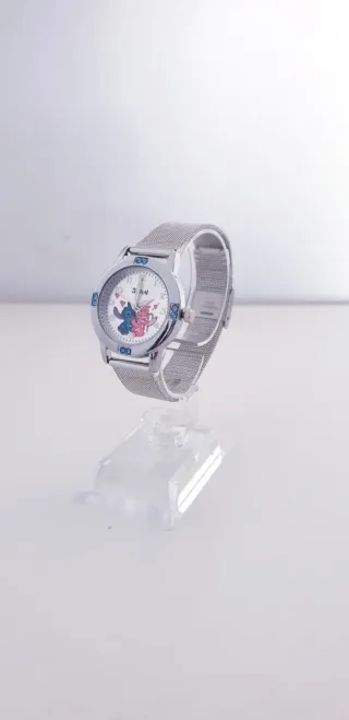 RELOJ INFANTIL "STITCH". RELOJ ANALÓGICO, COLOR PLATEADO, COMBINA FUNCIONALIDAD Y DIVERSIÓN, PERMITIENDO A LOS NIÑOS APRENDER A LEER LA HORA DE UNA MANERA ENTRETENIDA. IDEAL PARA EL USO DIARIO, LA ESCUELA, ACTIVIDADES AL AIRE LIBRE O SIMPLEMENTE PARA JUGAR EN CASA. NUEVO A ESTRENAR.