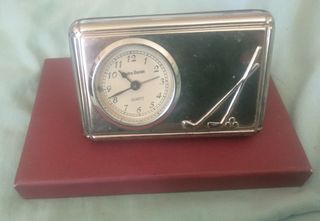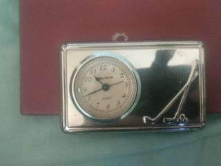 Reloj de mesa de plata Pedro Durán. Algo desgaste parte inferior que no se ve al colocarlo. Medidas 10 cm×7 cm×2'5 cm