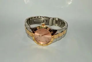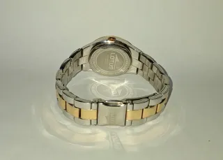 Elegante reloj Lotus con un diseño bicolor que combina tonos dorados y plateados. Un accesorio sofisticado para cualquier ocasión. - Esfera con acabado satinado rosa. - Brazalete de eslabones metálicos. - Cierre de seguridad.