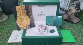 Reloj de la marca Rolex con una combinación de colores rosa y plateado. Incluye su caja original y documentación. - Caja original. - Documentación de garantía.