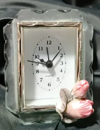 Lote de 15 Elegantes relojes de mesa con un diseño único y un toque floral por 1€ cada uno. - Marco plateado y cristal - Adorno de rosas en tonos rosados y plateados. Despertador/reloj/relojes/regalos/recuerdos/obsequios/detalles/