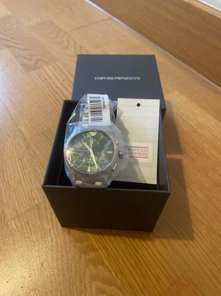Elegante reloj Emporio Armani con un diseño moderno y sofisticado. - Esfera en tono verde. - Detalles en plateado. - Caja original incluida.