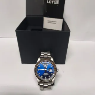 Reloj Lotus modelo 18854 Freedom original. Estado: nuevo sin etiquetas. Caja y brazalete de acero inoxidable. Esfera azul degradada con indicadores tipo cristal. Funciones de día de la semana y fecha. Resistente al agua 10 ATM. Incluye eslabones extra para ajuste de tamaño. Sin arañazos ni marcas. Se entrega con caja original y documentación.
