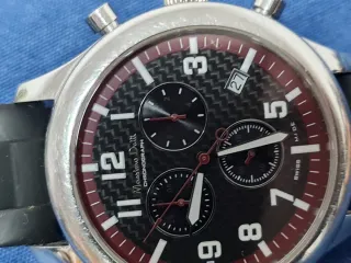 Reloj Massimo Dutti , perfecto estado, cristal de zafiro. - Esfera negra con detalles en rojo. - Correa de caucho negra. - Bisel plateado. - Función cronógrafo. - Indicador de fecha.