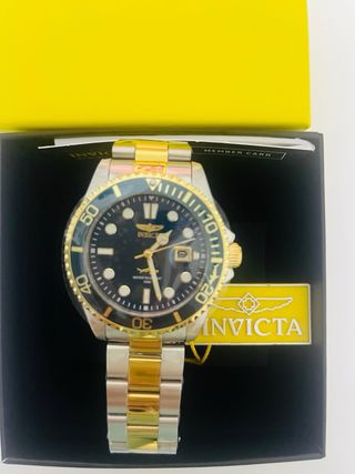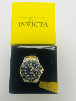 Elegante reloj Invicta con detalles en oro y plata. - Bisel giratorio. - Correa de acero inoxidable. - Resistente al agua 100M.