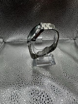 Reloj de cuarzo plateado para hombre 30 - 38 mm 📏 Medidas en la fotografía. 🆕 Está como nuevo, sin etiquetas. ℹ️ Pese a su coste, parece un reloj de alta gama del mismo tipo a la vista. El reloj no pesa, es ligero. Es adecuado para muñecas más bien finas. Para diámetros de muñeca de unos 17-18 cm. No obstante, siempre puedes eliminar, si lo necesitas, una o más placas en tu relojería más cercana. 🏷️ ¡El precio actual del producto supone un descuento de alrededor del 50% en relación a su coste original! 📦 ¡Envío rápido y bien protegido! 📲 Si tiene alguna duda, ¡Contacte conmigo!