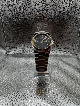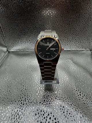 Elegante reloj con una combinación de colores negro y plateado. - Diseño clásico y sofisticado. - Correa de metal. - Esfera redonda. Nuevo a estrenar