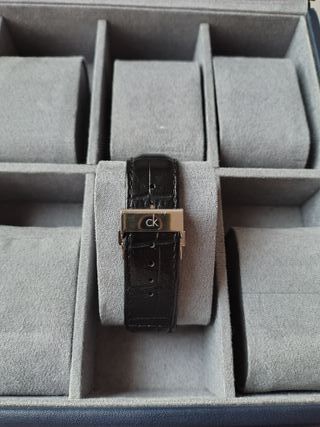 Elegante reloj Calvin Klein con muy poco uso. Swiss made - Caja de acero inoxidable. - Correa de piel negra. - Esfera gris oscuro. - Cristal resistente.