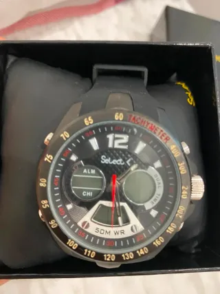 Reloj de pulsera con diseño deportivo y moderno. - Esfera analógica y digital. - Correa de caucho. - Resistente al agua 50M WR.