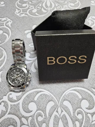 Elegante reloj Boss con diseño cronógrafo. - Esfera negra. - Correa y caja de acero inoxidable plateado. - Bisel con detalles. - Tres subesferas en la esfera principal.