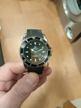 Elegante reloj Fredric con estilo diver. - Bisel mitad azul mitad negro - Correa de acero plateada. - Esfera negra. - Conserva embalajes originales Entrega en barcelona