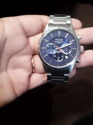 Reloj Pulsar Cronógrafo Azul y Plateado