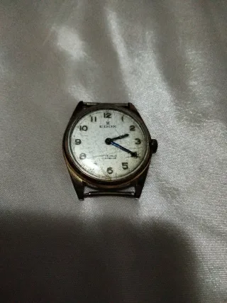 Elegante reloj Edox con una combinación de colores dorado y plateado. - Esfera blanca con números arábigos. - Agujas de hora y minuto. Signos de desgaste y cristal rallado