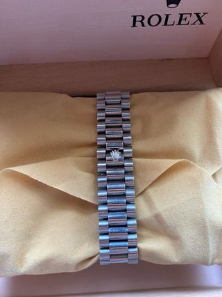 Elegante reloj de pulsera con detalles plateados y esfera blanca. Mantiene todos los protectores. Caja original, producto auténtico - Diseño sofisticado. - Correa de eslabones metálicos.