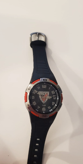 Elegante reloj con el escudo del Athletic Club Bilbao. - Diseño en color negro y plateado. - Escudo del club en la esfera. - En su caja original. - Muy buen estado