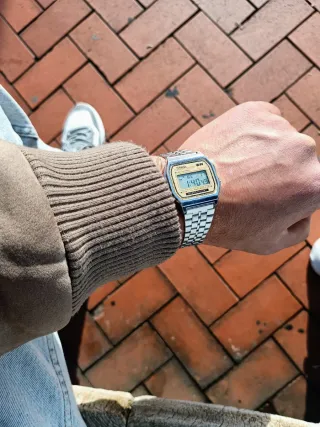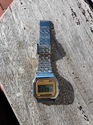 Reloj Casio con un diseño clásico y elegante. - Combinación de colores dorado y plateado. - Correa metálica ajustable.