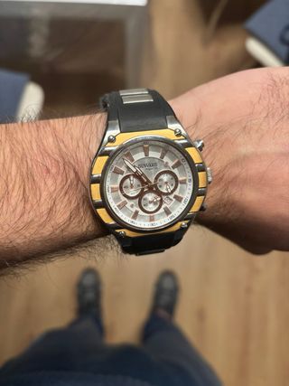 Vendo reloj Guess de aguja, acabado en acero color plata, en estado impecable. Ha sido usado muy pocas veces, por lo que está prácticamente nuevo: cristal sin rayas, correa perfecta y mecanismo funcionando a la perfección. Es un reloj muy elegante, ideal tanto para vestir como para uso diario. Diseño fino, moderno y con ese toque clásico que caracteriza a Guess. Características: • Marca: Guess • Tipo: Reloj analógico (de aguja) • Material: Acero inoxidable • Color: Plata • Estado: 9.9/10 • Cierre seguro y cómodo