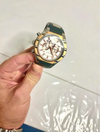 Elegante reloj Duward con detalles en oro y plata. Un accesorio sofisticado para cualquier ocasión. - Diseño de cronógrafo. - Correa mixta de metal y caucho. - Resistente al agua. Tambien dispongo de videos para verlo mejor. Solo habria que poner pila y a funcionar!