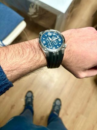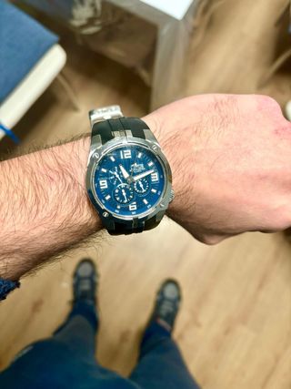 Elegante reloj Lotus con detalles en azul y plata. Dispongo de videos para una mejor visualizacion. - Esfera de color azul. - Bisel plateado. - Resistente al agua. - Correa de goma negra.